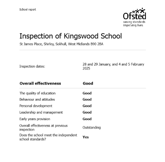 Kingswood School provides an exceptional environment where children are genuinely supported and encouraged to grow. The balance between academic excellence and pastoral care is outstanding, and my child has gained both confidence and a real love for learning.